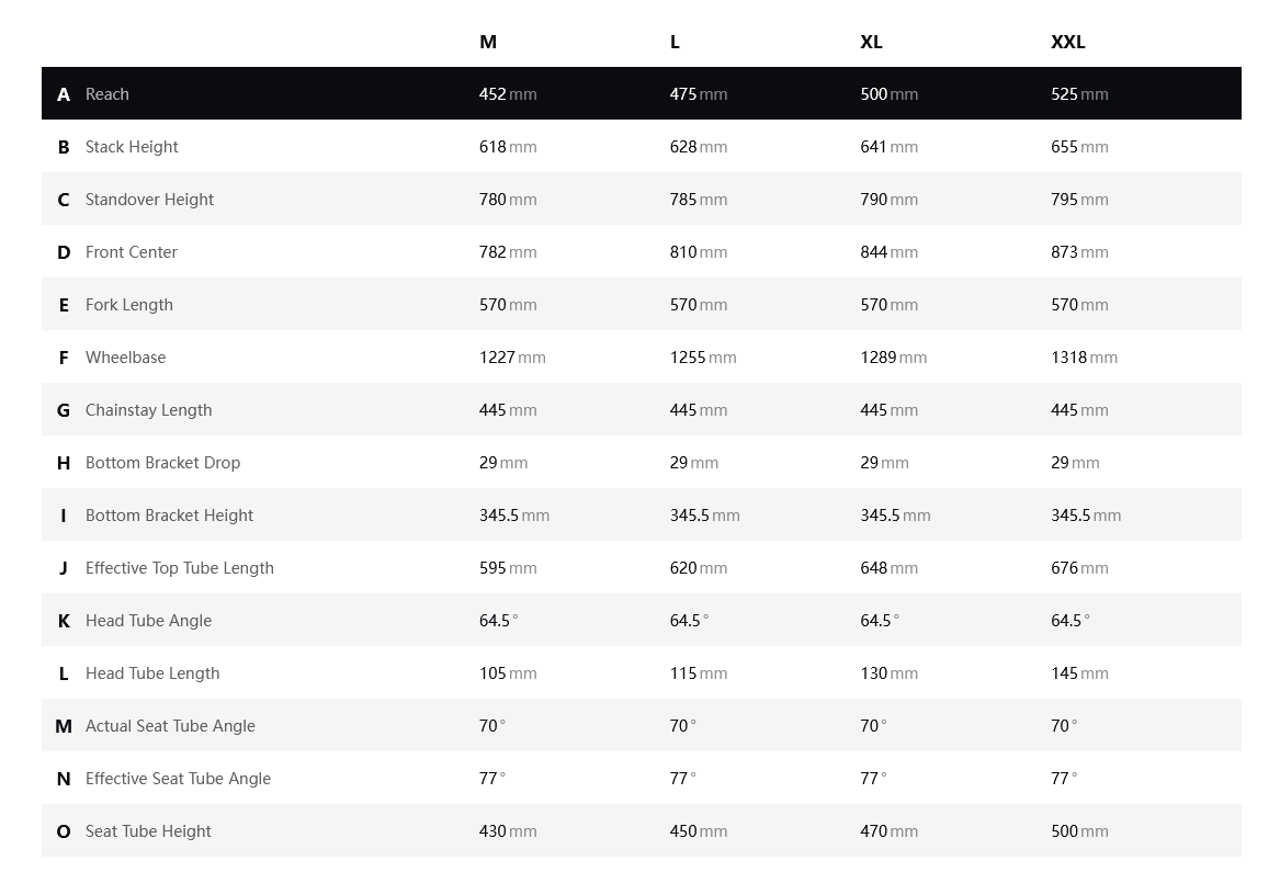| Seatpost | Fox Transfer Factory, Travel adjustable in 5mm M: 125-150mm L/XL: 155-180mm XXL: 185-210mm |