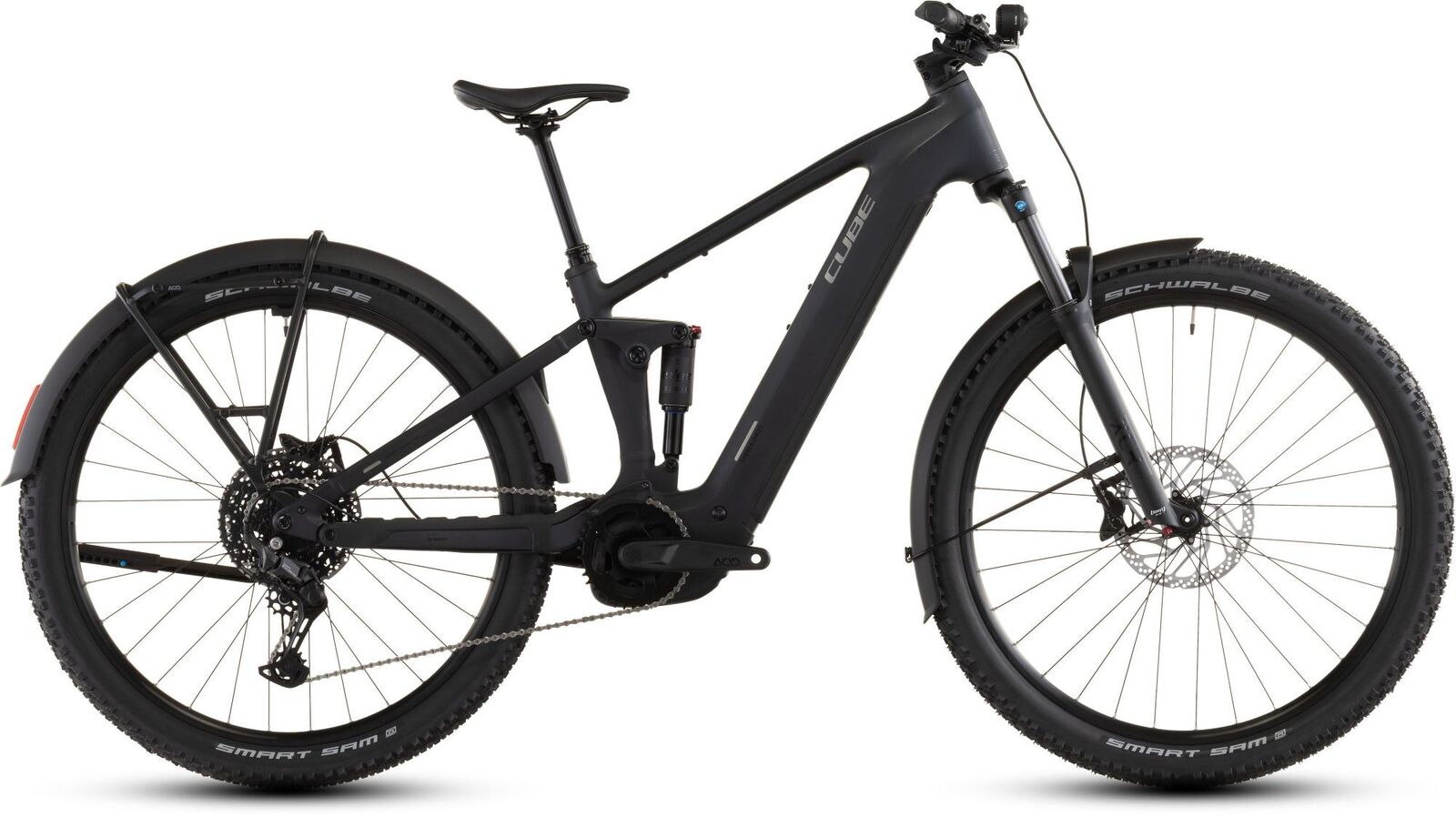 | Description | The right accessories can make a bike complete - and with the Stereo Hybrid ONE22 Pro 800 FE we've included a complete set. There's a luggage carrier ready to take on a weekend tour or the weekday commute. Mudguards to help keep mud and water at bay. And a kickstand and lights too. Bosch provides the powerful CX drive unit Purion 200 controller and 800Wh battery and we fitted Shimano's easy-to-use Cues 10-speed gears to help get you there and back. And grippy Schwalbe 2.6 in tyres with strong Shimano hydraulic disc brakes help keep you safe. It's ready for anything.Frame descriptionOur mountain bike Swiss army knife comes complete with a semi-integrated luggage carrier full length mudguards a lighting set and sturdy kickstand. But that's just the start. The heart of the Stereo Hybrid ONE22 FE is the Bosch CX drive and a high capacity 800Wh battery. Comfort Geometry and our proven four-bar suspension system work together to keep your wheels tracking true on even the longest rides. Integrated cable routing flatters the frame's elegant looks. A Direct Mount chain guard and UDH dropout may not sound exciting but they're the little details that help make the difference. And with Size Split there's a perfectly proportioned option for pretty much every rider. Our mountain bike Swiss army knife comes complete with a semi-integrated luggage carrier full length mudguards a lighting set and sturdy kickstand. But that's just the start. The heart of the Stereo Hybrid ONE22 FE is the Bosch CX drive and a high capacity 800Wh battery. Comfort Geometry and our proven four-bar suspension system work together to keep your wheels tracking true on even the longest rides. Integrated cable routing flatters the frame's elegant looks. A Direct Mount chain guard and UDH dropout may not sound exciting but they're the little details that help make the difference. And with Size Split there's a perfectly proportioned option for pretty much every rider. Frame: Aluminum Superlite Gravity Casting Technology Efficient Comfort Control FSP 4-Link Agile Comfort Geometry Boost 148 UDHTM Full Integrated Battery Advanced Internal Cable Routing Kickstand/Fender/Carrier Mounting Points Integrated Seatclamp Fork: SR Suntour XCR34X 2CR Air Tapered 15x110mm 120mm Shock: SR Suntour EdgeX R 185x52.5mm Rebound Adjust Trunnion Mount Shock hardware: Top: 54mm Trunnion Mount Bottom: 22.2x8mm Headset: ACROS AZF-1034 ICR (Integrated Cable Routing) Top Zero-Stack 1 1/2" (ZS 56mm) Bottom Zero-Stack 1 1/2" (ZS 56mm) X-Connect Interface Stem: CUBE Performance Stem E-MTB 35 FPI-Link Handlebar: CUBE Rise Trail Bar 35 Grips: ACID Hybrid Perform Rear derailleur: Shimano Cues RD-U6000-GS 10-Speed Chain guide: Reverse Flip-Guide E-Chain Guide Direct Mount I-Plate Shifters: Shimano Cues SL-U6000 Rapidfire-Plus Brake system: Shimano BR-MT420 Hydr. Disc Brake (203/203) Crankset: ACID MTB Hybrid Pro 38T Crankset chainring sizes: 38T Cassette: Shimano Cues CS-LG300 11-48T Number of gears: 10 Chain: KMC eGlide Wheelset (system wheels): ACID PRO 30 32/32 Spokes 15x110mm/12x148mm Tubeless Ready Tires: Schwalbe Smart Sam Active 2.6 Pedals: ACID PP MTB Saddle: ACID Venec EMTB Plus 145 Seat post: CUBE Dropper Post Handlebar Lever Internal Cable Routing 31.6mm Seat post = dropper Yes/No: YES Front light: ACID Front Light PRO-E 150 X-Connect 12V DC Rear light: ACID Mudguard Rear Light PRO-E 12V DC Kickstand: ACID FM Pure Kickstand Mudguard: ACID 65 Bell: Knog Oi Carrier: ACID Carrier SIC 2.0 Rail Boost Engine: Bosch Drive Unit Performance Line CX max. 100Nm (BDU38) Battery: Bosch PowerTube 800 Charger: Bosch 2A Remote: Bosch Purion 200 with Integrated Display |