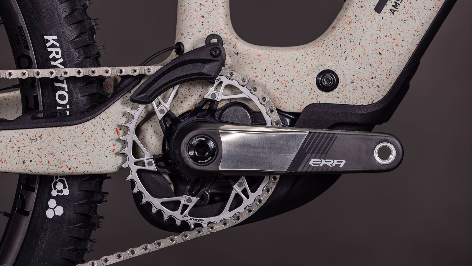 | Description | A special bike needs special treatment which is why we fitted Bosch's powerful and versatile CX-R drive to the AMS Hybrid 177 C:62 Super TM 600X. With up to 100Nm of torque and 750W peak power - and a 600Wh battery - it has more than enough grunt to get you back to the top for one more run again and again. Fox's Podium fork and Float X2 Factory shock help deliver 170mm of rock-devouring travel to the Newmen Phase 30 wheelset shod with Continental Argotal and Kryptotal 2.4in tyres. Sram's Maven Ultimate hydraulic disc brakes and a dropper post help keep you in full control at all times. And Sram's precise XX Eagle Transmission gears with RaceFace Era carbon crank are all you need for long days of Alpine-descending mayhem. Bring it on!Frame descriptionWe set out to make a lighter more capable all-mountain e-mtb - and the AMS Hybrid 177 C:62 frame is the heart of it. Built from our C:62 carbon and featuring Bosch's BDU38YY motor mount for compatibility with both SX and CX motors it features a built-in 600Wh PowerTube battery. We've tweaked the geometry and kinematics to suit a bike built to take on rowdy technical trails at high speed. Mullet wheels and 170mm travel front and rear deliver epic handling and an angle-adjustable headset means you can tweak the geometry to suit your own preference. Internal Cable Routing complements the frame's clean aesthetic and of course there's a UDH gear hanger and Direct Mount chain guard. Bring it on! We set out to make a lighter more capable all-mountain e-mtb - and the AMS Hybrid 177 C:62 frame is the heart of it. Built from our C:62® carbon and featuring Bosch's BDU38YY motor mount for compatibility with both SX and CX motors it features a built-in 600Wh PowerTube battery. We've tweaked the geometry and kinematics to suit a bike built to take on rowdy technical trails at high speed. Mullet wheels and 170mm travel front and rear deliver epic handling and an angle-adjustable headset means you can tweak the geometry to suit your own preference. Internal Cable Routing complements the frame's clean aesthetic and of course there's a UDH gear hanger and Direct Mount chain guard. Bring it on! Frame: C:62® Monocoque Advanced Twin Mold Technology Effiecient Trail Control FSP 4-Link Agile Trail Geometry Boost 148 UDHTM Fixed Integrated Battery Advanced Internal Cable Routing Fork: Fox Podium Factory GRIPX2 Tapered 15x110mm 170mm Shock: Fox Float X2 Factory 230x65mm Adjustable HSC/LSC/HSR/LSR w/ 2-Pos. Lever Shock hardware: Front: 30x8mm Rear: w/o DU-Bushing 15 mm Headset: ACROS AZF-675 ICR (Integrated Cable Routing) Top Zero-Stack 1 1/2" (ZS 56mm) Bottom Zero-Stack 1 1/2" (ZS 56mm) Fiber Inserts for Angle Adjustment Stem: Race Face Turbine R 35 Handlebar: Race Face ERA 35 Grips: ACID Disrupt Soft Compound Rear derailleur: Sram XX Eagle AXSTM Transmission 12-Speed Electronic Shifting System Chain guide: Reverse Flip-Guide E-Chain Guide Direct Mount I-Plate Shifters: Sram AXSTM Pod Ultimate Controller Brake system: Sram Maven Ultimate Hydr. Disc Brake (200/200) Crankset: Race Face ERA E-MTB 36T Crankset chainring sizes: 36T Cassette: Sram XS-1297 10-52T Number of gears: 12 Chain: Sram XX Eagle Transmission Wheelset (system wheels): Newmen Phase 30 base/strong 28/32 Spokes 15x110mm/12x148mm Tubeless Ready Front tire: Conti Argotal Enduro Super Soft Tubeless Ready 2.4 Rear tire: Conti Kryptotal Rear Downhill Soft Tubeless Ready 2.4 Pedals: ACID PP MTB Saddle: ACID Venec EMTB Trail 140 Seat post: Fox Transfer Factory 31.6mm Kashima Coated Seat post = dropper Yes/No: YES Engine: Bosch Drive Unit Performance Line CX-R 100Nm (BDU38) Battery: Bosch PowerTube 600 Charger: Bosch 4A Remote: Bosch Mini Remote Display: Bosch Kiox 400C |
