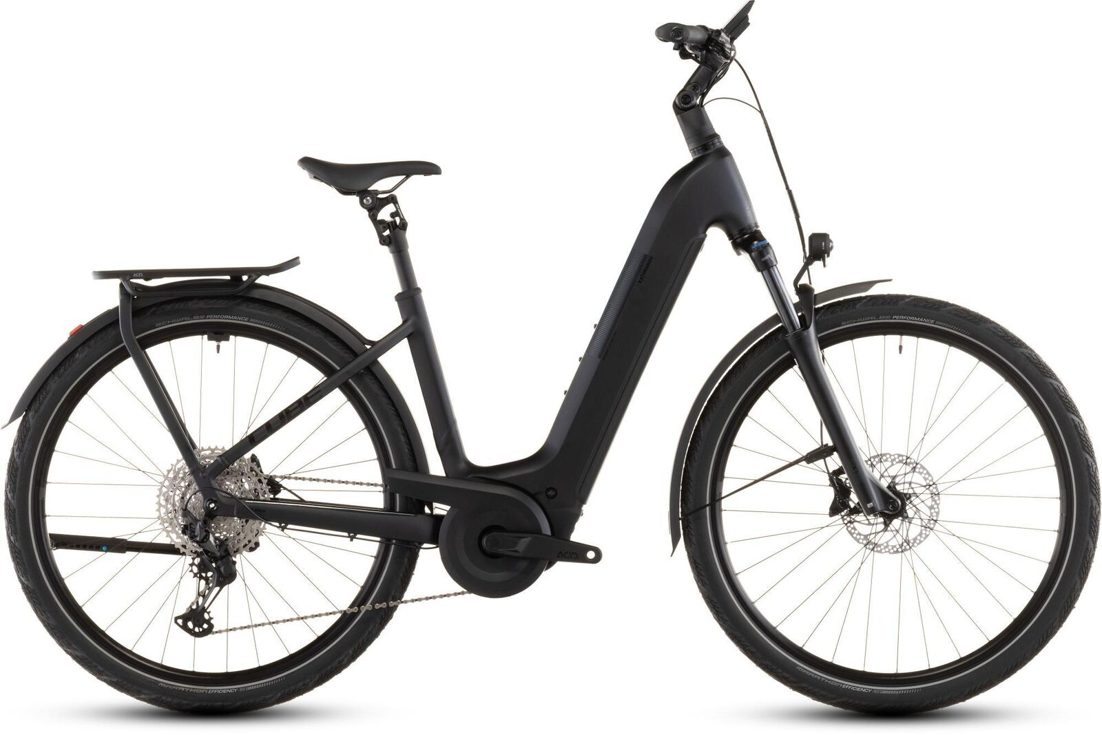 | Description | The Kathmandu Hybrid Pro by CUBE is all about the freedom of two-wheeled exploration with a handy Bosch power boost. You can't miss the elegant lines of the Integrated Carrier 3.0 which provides a sturdy base for carrying whatever you need. The Bosch CX drive and 800Wh PowerTube battery meanwhile are so neatly incorporated into the frame's design you'll barely notice them until you start turning the pedals. At which point the wide range and precise shifting of Shimano's XT 1x12 gears are bound to come in handy as is the smooth strength of the 4-piston Shimano hydraulic disc brakes when you need to slow down. With a full complement of included accessories including a super-comfortable parallelogram seatpost the only remaining question is where you'll be headed next... Frame description The Kathmandu Hybrid's Easy Entry frame is designed to do exactly what it says making adventurous cycling as accessible and straightforward as possible. The neatly housed Bosch CX drive and 800Wh PowerTube battery are just the start. Efficient Comfort Geometry is designed around a 100mm travel suspension fork for better control even when the going gets rough. Integrated cables complement the frame's clean lines while a UDH dropout is tough versatile and future-proof. And of course there's an integrated chain guard mount and our tough sturdy and exceptionally neat Integrated Carrier 3.0 so you can carry everything you need for your adventures. The Kathmandu Hybrid's Easy Entry frame is designed to do exactly what it says making adventurous cycling as accessible and straightforward as possible. The neatly housed Bosch CX drive and 800Wh PowerTube battery are just the start. Efficient Comfort Geometry is designed around a 100mm travel suspension fork for better control even when the going gets rough. Integrated cables complement the frame's clean lines while a UDH dropout is tough versatile and future-proof. And of course there's an integrated chain guard mount and our tough sturdy and exceptionally neat Integrated Carrier 3.0 so you can carry everything you need for your adventures. Frame: Aluminium Superlite Gravity Casting Technology Efficient Comfort Geometry Boost148 UDHTM Fully Integrated Battery IC 3.0 Advanced Internal Cable Routing Integrated Seatclamp Fork: SR Suntour NX1-32 LO Air Tapered 15x110mm 100mm Headset: ACROS AZF-1035 ICR (Integrated Cable Routing) Top Zero-Stack 1 1/2" (ZS 56mm) Bottom Zero-Stack 1 1/2" (ZS 56mm) HIC Stem: CUBE Comfort Stem Pro 31.8mm Adjustable Handlebar: CUBE Comfort Trail Bar 700mm Grips: ACID Travel Comfort Rear derailleur: Shimano XT RD-M8100-SGS ShadowPlus 12-Speed Shifters: Shimano Deore SL-M6100-IR Direct Attach Brake system: Shimano BR-MT420 Hydr. Disc Brake (180) Crankset: ACID MTB Hybrid Pro 40T Crankset chainring sizes: 40T Cassette: Shimano Deore CS-M6100 10-51T Number of gears: 12 Chain: KMC e12 Wheelset (system wheels): ACID SLX 25 32/32 Spokes 15x110mm/12x148mm Tubeless Ready Tires: Schwalbe Marathon Efficiency PerfL 55-622 Pedals: ACID PP Trekking Saddle: ACID Sequence 180 Seat post: SR Suntour NVX 31.6mm Seat post = dropper Yes/No: NO Front light: ACID Front Light PRO-E 150 X-Connect 12V DC Rear light: ACID Mudguard Rear Light PRO-E 12V DC Kickstand: ACID FM Pure Kickstand Mudguard: ACID 65 Integrated Carrier 3.0 Bell: Reich Cycle Bells Ringsound Carrier: ACID Integrated Carrier 3.0 CUBE Adapter Compatible Engine: Bosch Drive Unit Performance Line CX max. 100Nm (BDU38) Battery: Bosch PowerTube 800 Charger: Bosch 2A Remote: Bosch LED Remote Display: Bosch Kiox 500 |