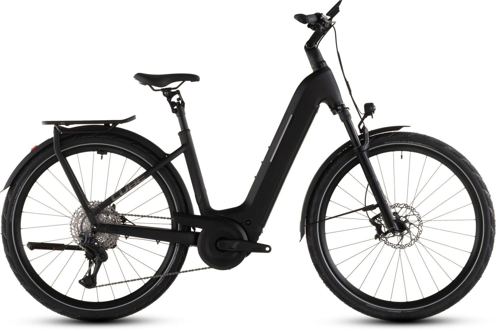 | Description | The Kathmandu Hybrid SLX from CUBE redefines dependable. Equipped with Newmen Performance 30 wheels shod with Schwalbe Marathon Efficiency tyres it'll keep rolling whether you're tackling potholed city streets or dusty country lanes. The adjustable stem parallelogram suspension seatpost and Fox 34 AWL Float suspension fork are all there in the name of comfort. The Integrated Carrier 3.0 is a tough elegant and versatile way for you to carry what you need and there's a full complement of included accessories too. An 800Wh battery ensures there's enough juice to keep feeding the Bosch CX drive and its up to 100Nm of pedal assistance. And with Shimano's 4-piston XT hydraulic disc brakes and electronic XT Di2 1x12 gears taking care of stop-and-go duties you know you're in good hands. Frame description The Kathmandu Hybrid's Easy Entry frame is designed to do exactly what it says making adventurous cycling as accessible and straightforward as possible. The neatly housed Bosch CX drive and 800Wh PowerTube battery are just the start. Efficient Comfort Geometry is designed around a 100mm travel suspension fork for better control even when the going gets rough. Integrated cables complement the frame's clean lines while a UDH dropout is tough versatile and future-proof. And of course there's an integrated chain guard mount and our tough sturdy and exceptionally neat Integrated Carrier 3.0 so you can carry everything you need for your adventures. The Kathmandu Hybrid's Easy Entry frame is designed to do exactly what it says making adventurous cycling as accessible and straightforward as possible. The neatly housed Bosch CX drive and 800Wh PowerTube battery are just the start. Efficient Comfort Geometry is designed around a 100mm travel suspension fork for better control even when the going gets rough. Integrated cables complement the frame's clean lines while a UDH dropout is tough versatile and future-proof. And of course there's an integrated chain guard mount and our tough sturdy and exceptionally neat Integrated Carrier 3.0 so you can carry everything you need for your adventures. Frame: Aluminium Superlite Gravity Casting Technology Efficient Comfort Geometry Boost148 UDHTM Fully Integrated Battery Integrated Carrier 3.0 Advanced Internal Cable Routing Integrated Seatclamp Fork: Fox 34 Float AWL 2-Position Sweep-Adjust RAIL Damper Tapered 15x110mm E-Bike Optimized 100mm Headset: ACROS AZF-1035 ICR (Integrated Cable Routing) Top Zero-Stack 1 1/2" (ZS 56mm) Bottom Zero-Stack 1 1/2" (ZS 56mm) HIC Stem: CUBE Comfort Stem Pro 31.8mm Adjustable Handlebar: CUBE Comfort Trail Bar HD 700mm Grips: ACID Travel Comfort Rear derailleur: Shimano XT Di2 RD-M8260-SGS 12-Speed Electronic Shifting System Shifters: Shimano Deore Di2 SW-M6250-IR Direct Attach Brake system: Shimano XT BR-M8120 Hydr. Disc Brake (180/180) Crankset: ACID MTB Hybrid Pro 40T Crankset chainring sizes: 40T Cassette: Shimano Deore CS-M6100 10-51T Number of gears: 12 Chain: Shimano CN-M6100 Wheelset (system wheels): Newmen Performance 30 base/strong 28/28 Spokes 15x110mm/12x148mm Tubeless Ready Tires: Schwalbe Marathon Efficiency Super Race V-Guard 55-622 Pedals: ACID PP Trekking Saddle: ACID Sequence Pro 170 Seat post: SR Suntour NVX 31.6mm Seat post = dropper Yes/No: NO Front light: ACID Front Light PRO-E 150 X-Connect 12V DC Rear light: ACID Mudguard Rear Light PRO-E 12V DC Kickstand: ACID FM Pure Kickstand Mudguard: ACID 65 Integrated Carrier 3.0 Bell: Reich Cycle Bells Ringsound Carrier: ACID Integrated Carrier 3.0 CUBE Adapter Compatible Engine: Bosch Drive Unit Performance Line CX max. 100Nm (BDU38) Battery: Bosch PowerTube 800 Charger: Bosch 4A Remote: Bosch LED Remote Display: Bosch Kiox 500 |