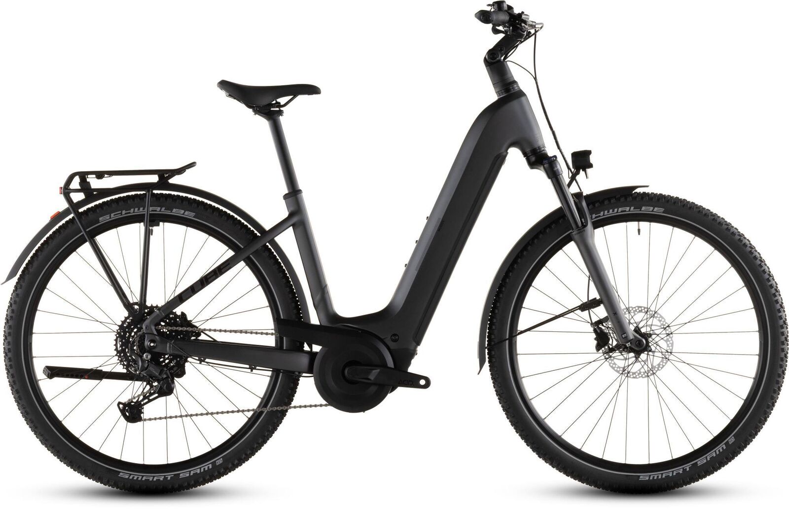 | Description | Who wouldn't want to have some freewheeling adventures in their life? With its rugged practicality and included accessories the Nuride Hybrid Performance 600 opens the joy of two-wheeled travel to almost everyone. There's a suspension fork and wide grippy Schwalbe tyres for a comfortable ride even on rougher roads and tracks. Powerful Shimano hydraulic disc brakes ensure safe slowing and stopping whatever the weather. We included all the accessories you're ever likely to need - including a carrier mudguards lights and kickstand - because you never know what might happen tomorrow. And the icing on the cake of course is the powerful Bosch Performance motor with 600Wh battery and easy-to-use Shimano Cues 10-speed gears to help speed you on your way. The Nuride Hybrid Performance's Easy Entry frame lives up to its name. It's easy to live with easy to ride and easy on the eye. Efficient Comfort Geometry does exactly what it says and the frame as you'd expect is very straightforward to mount and dismount - and that combination makes this the ideal bike for anyone. The neatly integrated 600Wh PowerTube battery and Bosch Performance motor - with Smart System - give your pedalling a smooth powerful boost just when you need it so you can make light work of any journey. And we included lights kickstand and mudguards so you're fully accessorised right from the start. Frame: Aluminium Superlite Gravity Casting Technology Efficient Comfort Geometry Boost148 UDHTM Fully Integrated Battery Advanced Internal Cable Routing Kickstand/Fender/Carrier Mounting Points Fork: SR Suntour X32 NLO Tapered 15x110mm 100mm Headset: ACROS AZF-1035 ICR (Integrated Cable Routing) Top Zero-Stack 1 1/2" (ZS 56mm) Bottom Zero-Stack 1 1/2" (ZS 56mm) HIC Stem: CUBE Comfort Stem Pro 31.8mm Adjustable Handlebar: CUBE Comfort Trail Bar 720mm Grips: ACID Hybrid Tour Rear derailleur: Shimano Cues RD-U6000-GS 10-Speed Shifters: Shimano Cues SL-U6000 Rapidfire-Plus Brake system: Shimano BR-MT200 Hydr. Disc Brake (180) Crankset: ACID MTB Hybrid Pro 38T Crankset chainring sizes: 38T Cassette: Shimano Cues CS-LG300 11-48T Number of gears: 10 Chain: KMC eGlide Wheelset (system wheels): ACID Pro 25 32/32 Spokes 15x110mm/12x148mm Tubeless Ready Tires: Schwalbe Smart Sam ActiveL 57-622 Pedals: ACID PP Trekking Saddle: ACID Sequence 180 Seat post: CUBE Performance Post 31.6mm Front light: ACID Front Light PRO-E 60 X-Connect 12V DC Rear light: ACID Mudguard Rear Light PRO-E 12V DC Kickstand: ACID FM Pure Kickstand Mudguard: ACID 65 BB-Mount Bell: Easy Bell Carrier: ACID Semi-Integrated Carrier ACID RILink Adapter Compatible Engine: Bosch Drive Unit Performance Line 75Nm (BDU34) Battery: Bosch PowerTube 600 Charger: Bosch 2A Remote: Bosch Purion 200 with Integrated Display |