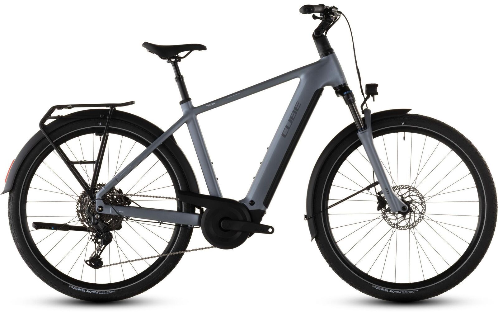 | Description | The Touring Hybrid Pro is proof of just how versatile a great bicycle can be. Its powerful Bosch PX motor 800Wh battery and 11-speed Shimano Cues gears are capable of whisking you from A to B with the minimum of fuss. There's a set of smooth strong Shimano hydraulic disc brakes to ensure you can stop safely in any weather. Practical accessories like the sturdy Semi Integrated Carrier 2.0 mudguards lights and kickstand mean you've everything you need for work or play. Efficient Comfort Geometry and an air-sprung suspension fork help make every journey a pleasure. And because we designed a wide range of sizes and a choice of frame styles there's bound to be one that'll suit you perfectly.Frame descriptionThe Touring Hybrid is designed to be versatile easy to live with and comfortable. That's why we started with our neat sturdy Semi Integrated Carrier 2.0 - because it makes it simple to carry what you need with you. There's an ACID chain guard kickstand full-length mudguards and lighting set too. The powerful Bosch Performance PX motor and 800Wh PowerTube battery are so neatly integrated into the design you'll barely notice they're there - apart from the extra help at the pedals of course. And Efficient Comfort Geometry is designed around a 100mm-travel suspension fork for smooth and confidence-inspiring steering even on rough roads. The Touring Hybrid is designed to be versatile easy to live with and comfortable. That's why we started with our neat sturdy Semi Integrated Carrier 2.0 - because it makes it simple to carry what you need with you. There's an ACID chain guard kickstand full-length mudguards and lighting set too. The powerful Bosch Performance PX motor and 800Wh PowerTube battery are so neatly integrated into the design you'll barely notice they're there - apart from the extra help at the pedals of course. And Efficient Comfort Geometry is designed around a 100mm-travel suspension fork for smooth and confidence-inspiring steering even on rough roads. Frame: Aluminium Superlite Gravity Casting Technology Efficient Comfort Geometry Boost148 UDHTM Fully Integrated Battery SIC 2.0 Advanced Internal Cable Routing Integrated Seatclamp Fork: SR Suntour NX1-32 LO Air Tapered 15x110mm 100mm Headset: ACROS AZF-1035 ICR (Integrated Cable Routing) Top Zero-Stack 1 1/2" (ZS 56mm) Bottom Zero-Stack 1 1/2" (ZS 56mm) HIC Stem: CUBE Comfort Stem Pro 31.8mm Adjustable Handlebar: CUBE Comfort Trail Bar 700mm Grips: ACID Travel Comfort Rear derailleur: Shimano Cues RD-U6000-GS 11-Speed Shifters: Shimano Cues SL-U6000 Rapidfire-Plus Brake system: Shimano BR-MT200 Hydr. Disc Brake (180) Crankset: ACID Trekking Hybrid 40T Crankset chainring sizes: 40T Cassette: Shimano Cues CS-LG400 11-50T Number of gears: 11 Chain: KMC eGlide Wheelset (system wheels): ACID Pro 25 32/32 Spokes 15x110mm/12x148mm Tubeless Ready Tires: Schwalbe Motion Big Apple PerfL 55-622 Pedals: ACID PP Trekking Saddle: ACID Sequence 180 Seat post: CUBE Suspension Seatpost HD 31.6mm Seat post = dropper Yes/No: NO Front light: ACID Front Light PRO-E 60 X-Connect 12V DC Rear light: ACID Mudguard Rear Light PRO-E 12V DC Kickstand: ACID FM Pure Kickstand Mudguard: ACID 57 SIC 2.0 Bell: Reich Cycle Bells Ringsound Carrier: ACID SIC 2.0 RILink Engine: Bosch Drive Unit Performance Line PX max. 90Nm (BDU34) Battery: Bosch PowerTube 800 Charger: Bosch 2A Remote: Bosch Purion 200 with Integrated Display |