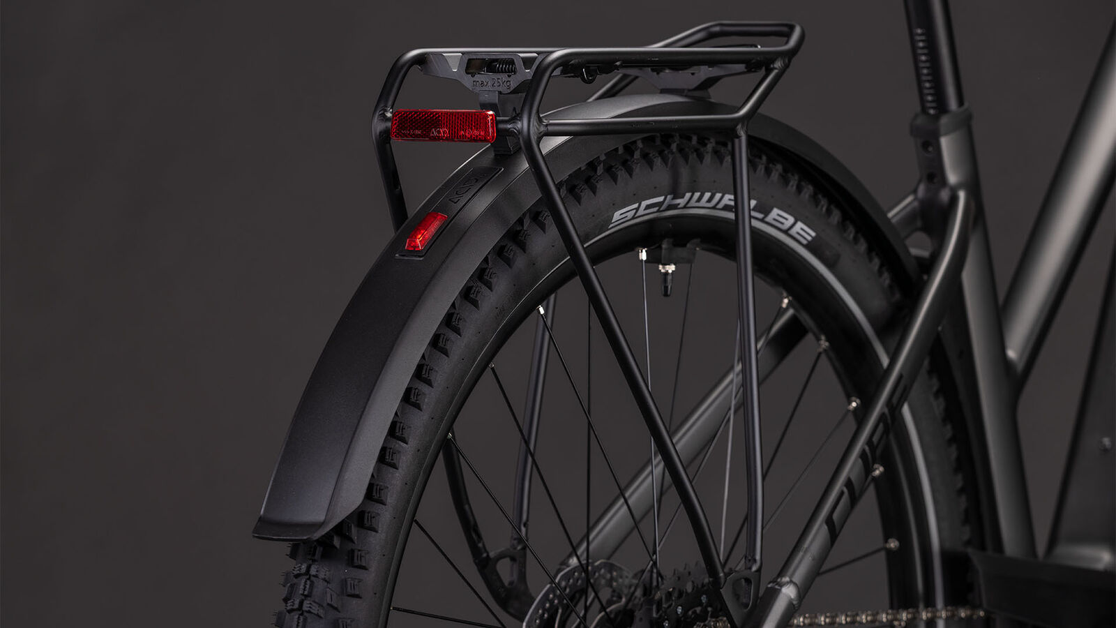 | Description | Who wouldn't want to have some freewheeling adventures in their life? With its rugged practicality and included accessories the Nuride Hybrid Performance 600 opens the joy of two-wheeled travel to almost everyone. There's a suspension fork and wide grippy Schwalbe tyres for a comfortable ride even on rougher roads and tracks. Powerful Shimano hydraulic disc brakes ensure safe slowing and stopping whatever the weather. We included all the accessories you're ever likely to need - including a carrier mudguards lights and kickstand - because you never know what might happen tomorrow. And the icing on the cake of course is the powerful Bosch Performance motor with 600Wh battery and easy-to-use Shimano Cues 10-speed gears to help speed you on your way. The Nuride Hybrid Performance's smoothly sculpted Trapeze frame looks familiar - elegant even - but the devil as always is in the detail. The powerful Bosch Performance motor - with Bosch Smart System and 600Wh PowerTube battery - is neatly integrated into the frame's clean lines and gives you smooth pedal assistance when you need it most. A suspension fork helps smooth rough roads and tracks to make exploring easier and Efficient Comfort Geometry does exactly what it says. Plus with the included lights kickstand and mudguards you're all set for any journey. Frame: Aluminium Superlite Gravity Casting Technology Efficient Comfort Geometry Boost148 UDHTM Fully Integrated Battery Advanced Internal Cable Routing Kickstand/Fender/Carrier Mounting Points Fork: SR Suntour X32 NLO Tapered 15x110mm 100mm Headset: ACROS AZF-1035 ICR (Integrated Cable Routing) Top Zero-Stack 1 1/2" (ZS 56mm) Bottom Zero-Stack 1 1/2" (ZS 56mm) HIC Stem: CUBE Performance Stem Pro 31.8mm Handlebar: CUBE Comfort Trail Bar 720mm Grips: ACID Hybrid Tour Rear derailleur: Shimano Cues RD-U6000-GS 10-Speed Shifters: Shimano Cues SL-U6000 Rapidfire-Plus Brake system: Shimano BR-MT200 Hydr. Disc Brake (180) Crankset: ACID MTB Hybrid Pro 38T Crankset chainring sizes: 38T Cassette: Shimano Cues CS-LG300 11-48T Number of gears: 10 Chain: KMC eGlide Wheelset (system wheels): ACID Pro 25 32/32 Spokes 15x110mm/12x148mm Tubeless Ready Tires: Schwalbe Smart Sam ActiveL 57-622 Pedals: ACID PP Trekking Saddle: ACID Sequence 180 Seat post: CUBE Performance Post 31.6mm Front light: ACID Front Light PRO-E 60 X-Connect 12V DC Rear light: ACID Mudguard Rear Light PRO-E 12V DC Kickstand: ACID FM Pure Kickstand Mudguard: ACID 65 BB-Mount Bell: Easy Bell Carrier: ACID Semi-Integrated Carrier ACID RILink Adapter Compatible Engine: Bosch Drive Unit Performance Line 75Nm (BDU34) Battery: Bosch PowerTube 600 Charger: Bosch 2A Remote: Bosch Purion 200 with Integrated Display |