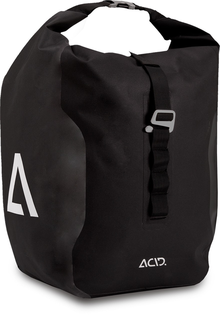 | Description | The abrasion-resistant waterproof ACID Pannier Bag PRO 15 SMLink with its welded construction and ACID clip system mounts securely to your bike in seconds. A convenient shoulder strap takes it from rack to shoulder with ease. Reflectors add visibility in all conditions. waterproof abrasion-resistant PVC-free welded construction ACID clip system shoulder strap aluminium G-hook reflective details Shock hardware: Bags |