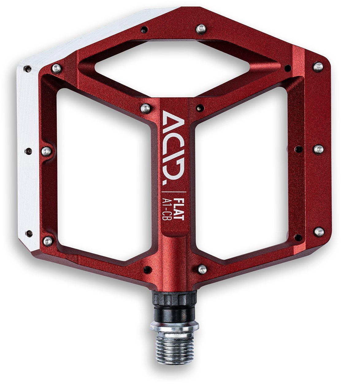 | Description | light flat pedal CNC finished aluminium body and CrMo axle chamfered edges for improved cornering clearance large contact surface ultra low-profile design nine replaceable and adjustable anti-slip pins per side sealed cartridge friction bearing and two sealed cartridge bearings I know every berm jump rock and tree root of this bike park. It's one massive adrenaline rush! And I can count on my ACID FLAT pedals 100%. With their adjustable pins and large platform I feel glued to the bike even on the gnarliest of root sections - yet I can still dab in a flash if things start to get a bit too loose. |